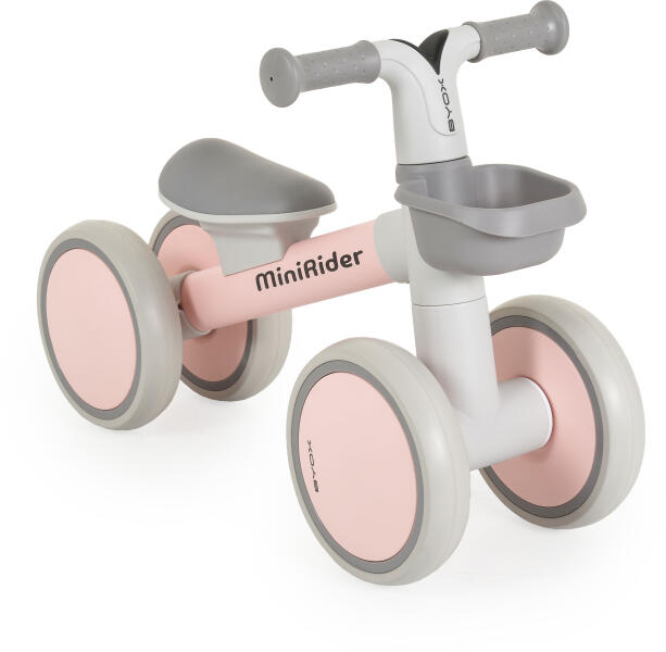 Mini egyensúlyozó kerékpár Mini Rider ideális választás 12 hónapos és 3 éves kor közötti gyermekek számára, maximális súlya 20 kg.